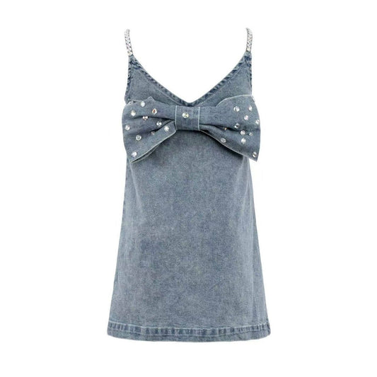 Gems bow denim dress