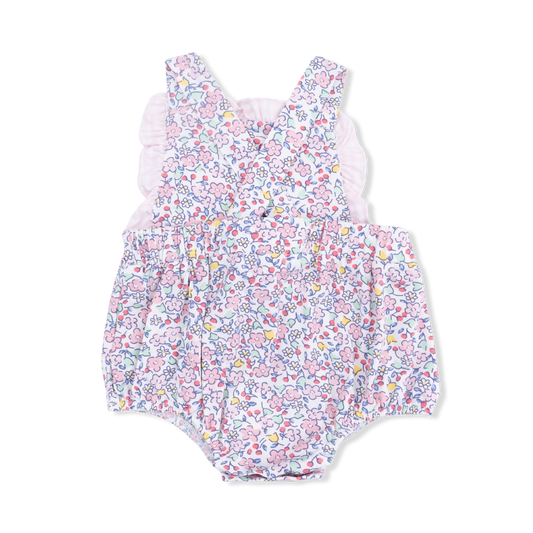 Micro gingham blue blizzard ric rac ruffle sunsuit