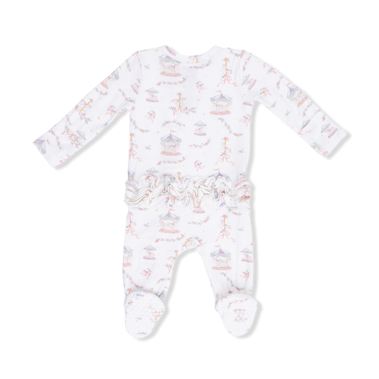 Bubble whale w. pink bows 2 way zipper ruffle footie