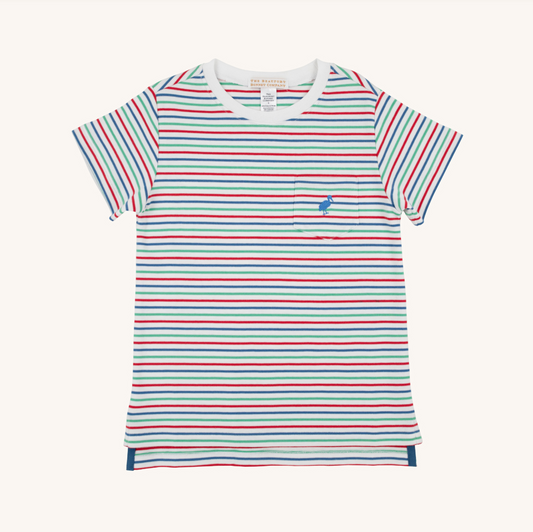 Prim and proper s/s polo - wawhite/belhaven blue stripe