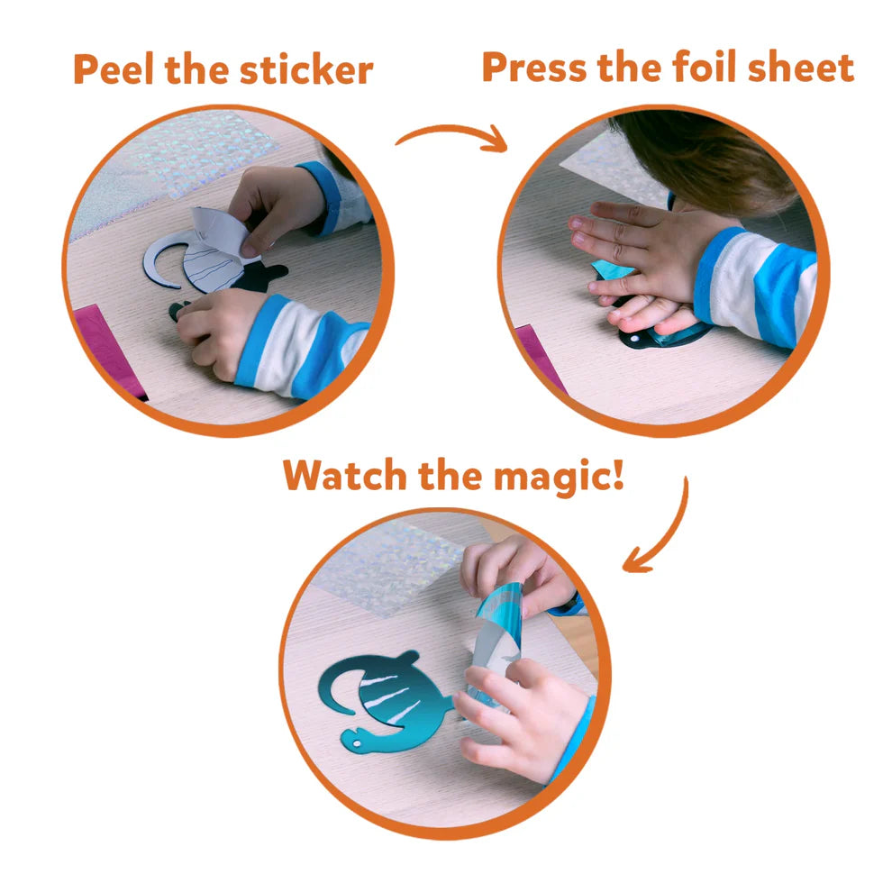 Foil Fun is a magical, mess-free activity to inspire hours of creative fun in your little one. Let their imagination soar as they create unique foil pictures with dinosaurs, volcanoes, fossils and more! Select a Picture Canvas, choose stickers and apply color using sparkly foil sheets. Add as many colorful stickers as needed to bring the canvases to life. Zero parental supervision required!