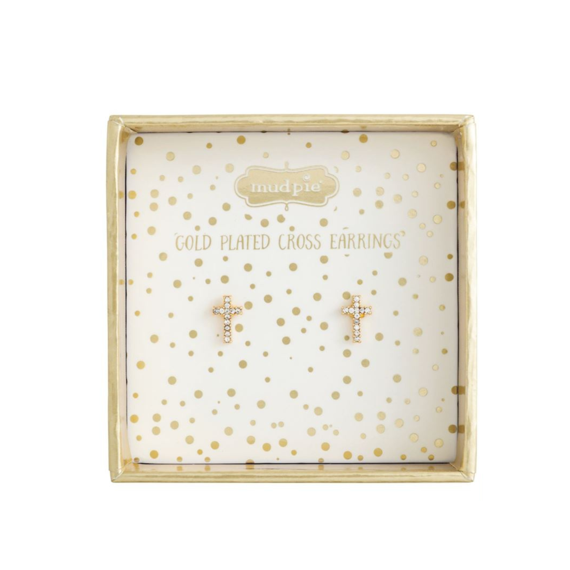 Pavé cross stud earrings. Ages 3+.