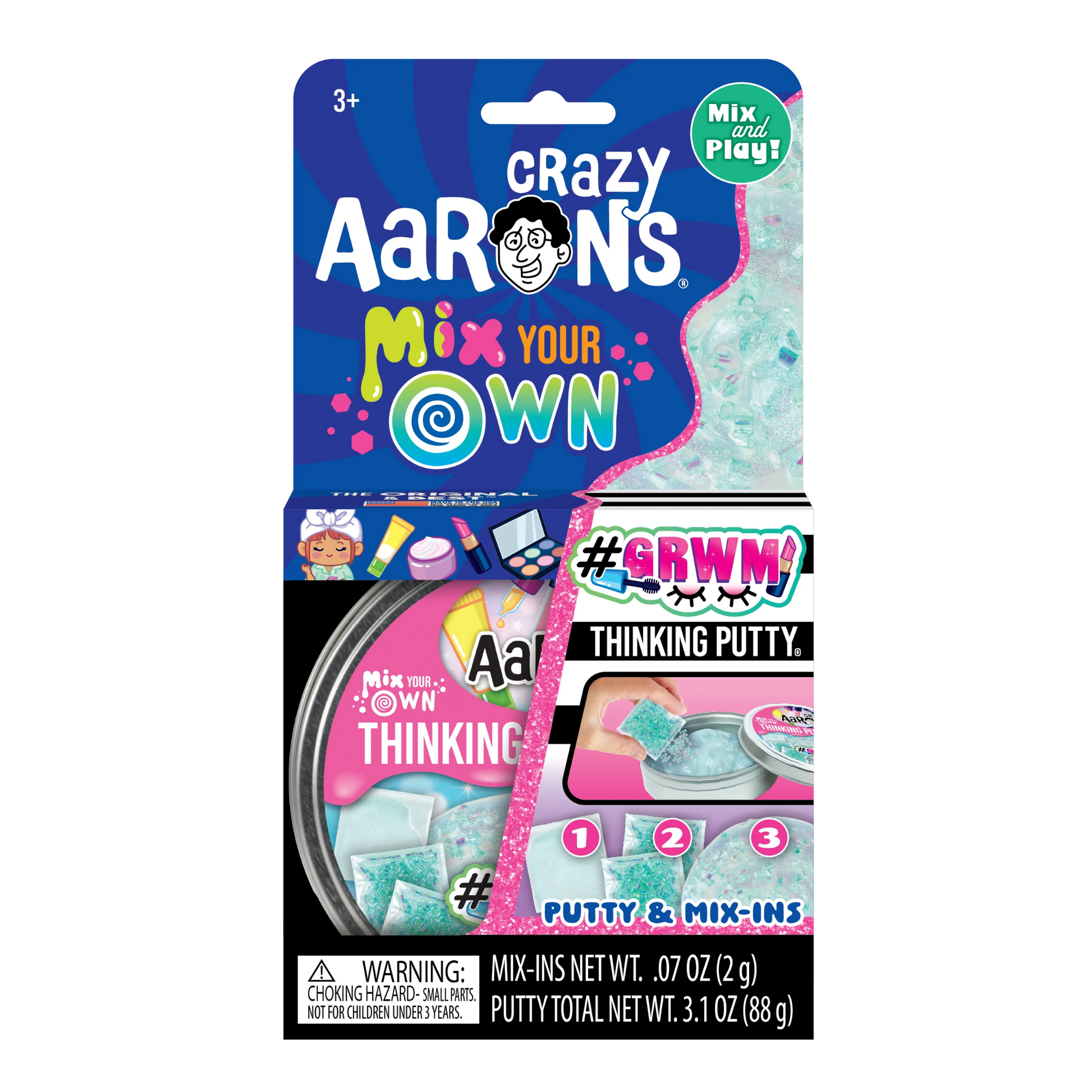 Mix your own Get Ready With Me Thinking Putty®! Everything you need is included in the tin. Simply mix the color-izer with the clear putty, add your mix-in, then play!