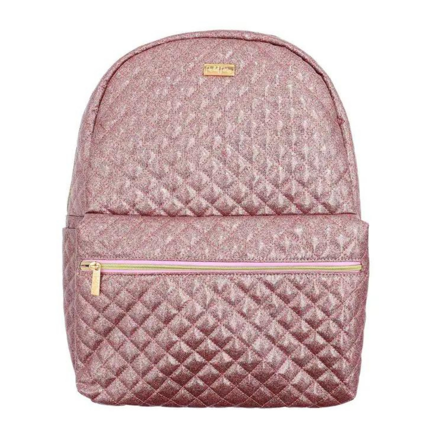 Bigger is better thanks to this oversized glitter coated, quilted backpack designed with someone on-the-go in mind! The bow shaped handle makes this a can't miss whether you're headed back to school or looking for a way to brighten your travel days or commute. This heavy-duty backpack comes with adjustable straps, side pockets to hold a water bottle or other accessories, a front pocket, and with luxe gold hardware too - what's not to love?