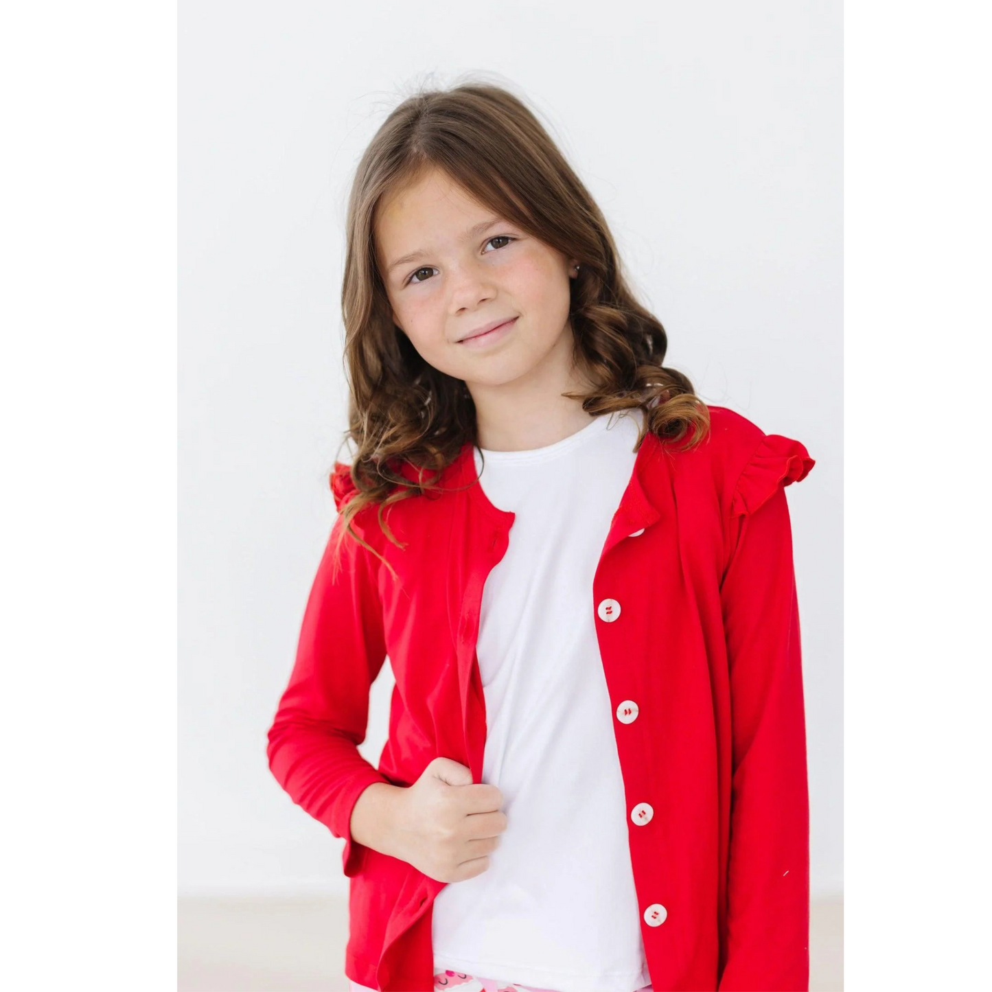 Red ruffle cardigan
