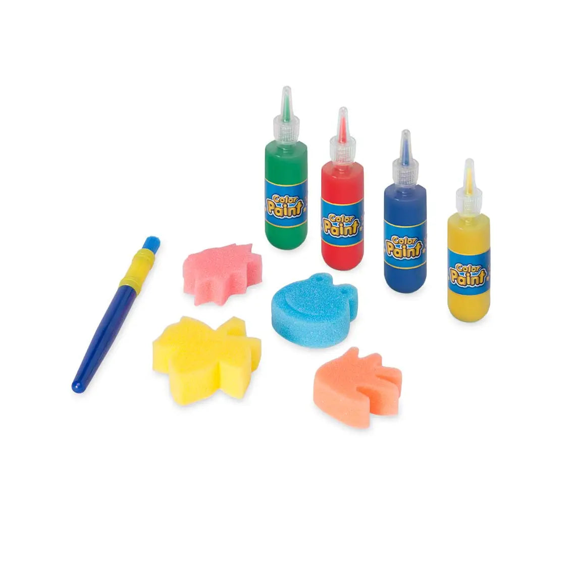 * Includes four paints (1 oz. each) with an improved formula to prevent staining the easel - just hose or wipe clean with water