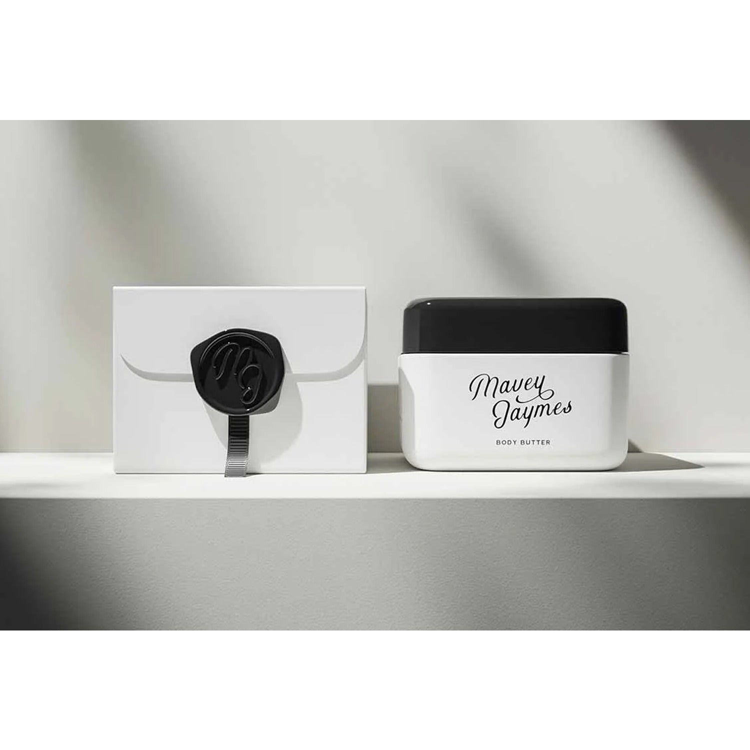 Calm and hydrate delicate skin with Mavey Jaymes Body Butter, a silky soft blend of shea butter, olive fruit oil, and oat kernel extract in a base of organic glycerin. This buttery emulsion offers lasting hydration to protect against dryness and chafing while nourishing skin with beneficial botanicals like calendula flower, rosemary and aloe leaf. Suitable for the entire family, our Body Butter’s soft whipped texture melts into the skin, leaving no greasy residue. With a delicate aroma of natural lavender and vanilla, Body Butter promotes relaxation and leaves skin feeling soft, hydrated, and healthy.