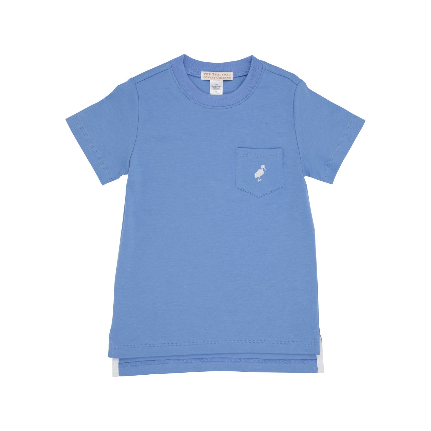 Our Carter Crewneck is on every little boy's wish list! It is comfortable and casual for everyday wear! Our Carter Crewneck in Barbados Blue with Worth Avenue White Stork is the perfect piece for everyday wear.