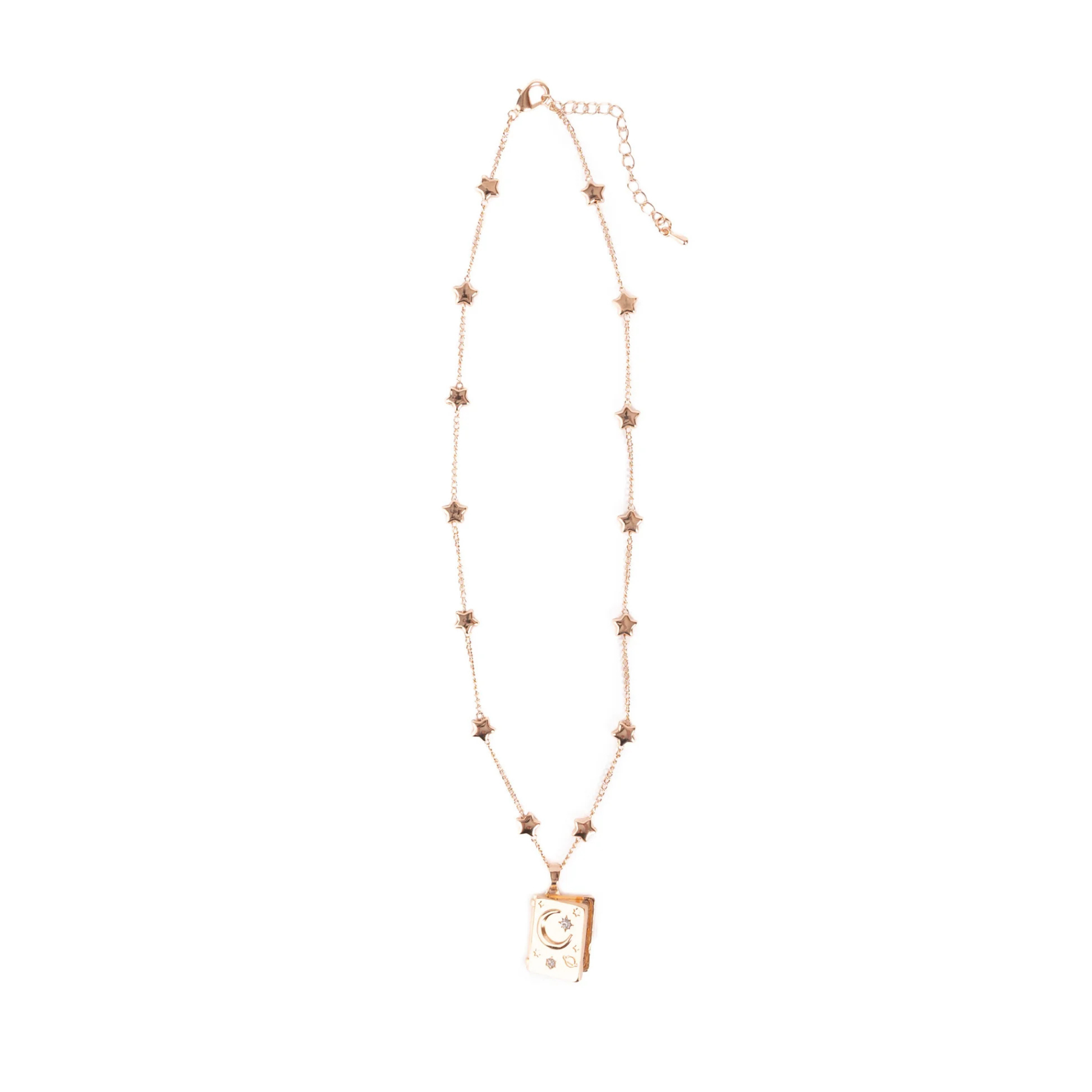 Our It Must Be in the Stars Locket is a captivating gold necklace that features delicate star charms along the chain and a charming book-shaped pendant adorned with a crescent moon! This locket holds a world of dreams and stories close to the heart, perfect for little dreamers and adventurers who believe that magic truly is written in the stars.