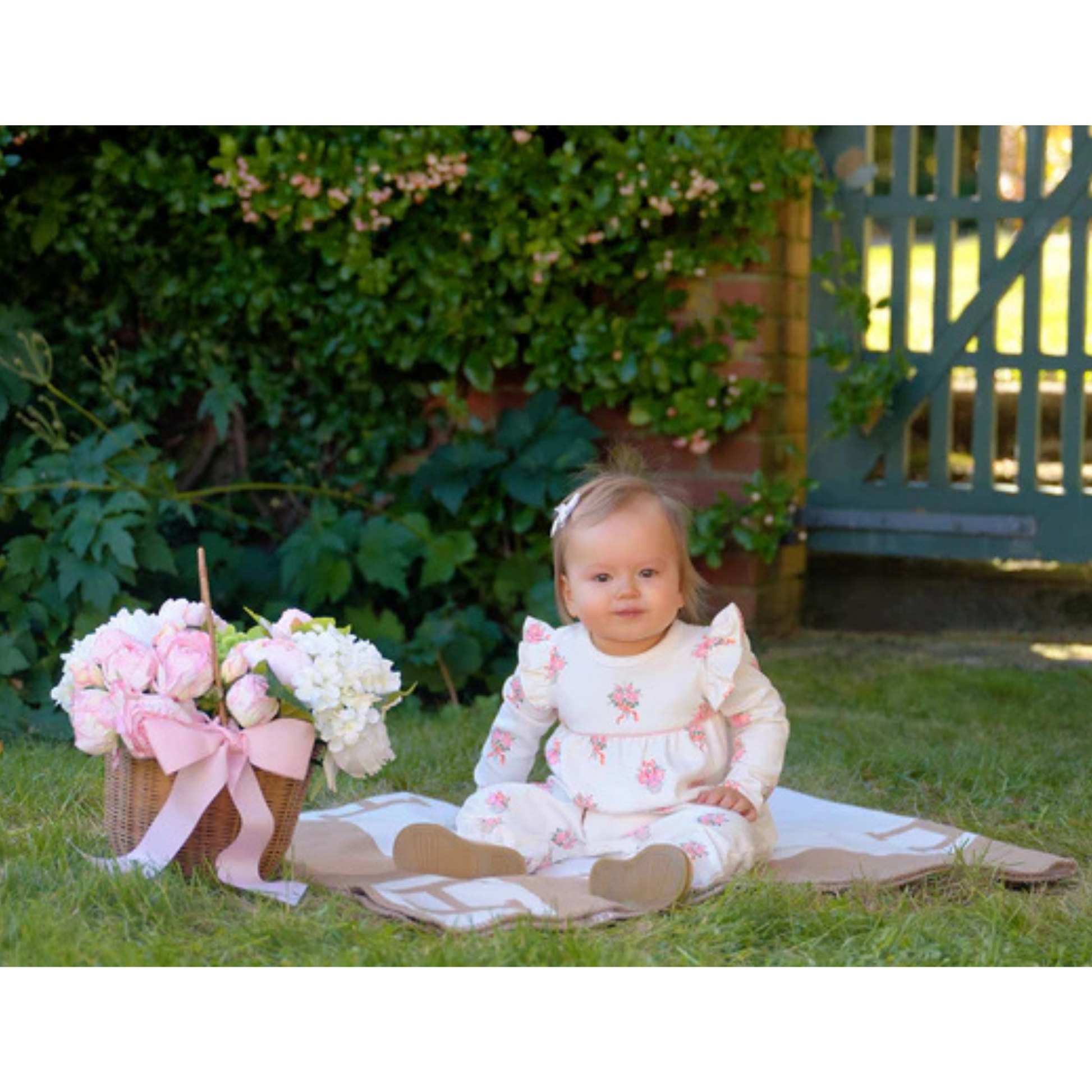 Our Leigh Ann Angel Sleeve Romper is a classic piece, and it's perfect for play time! Featuring Nonesuch Stems with Sandpearl Pink, your little love will be just darling in this sweet piece.