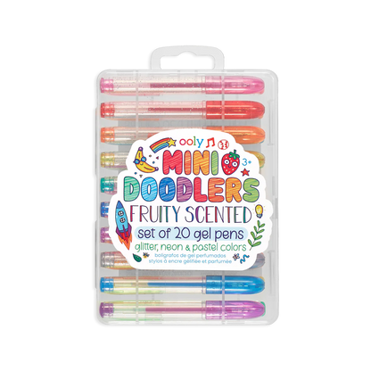 Accent your writing or drawings with different glittery hues or add some neon for pow or a bit of soft pastel color to wow. Each smooth writing scented gel pen has amazing fruity scents such as grape, orange and pineapple and to name a few. Mini Doodlers Gel Pens come in a handy reusable plastic case for organizing and easy carry around.