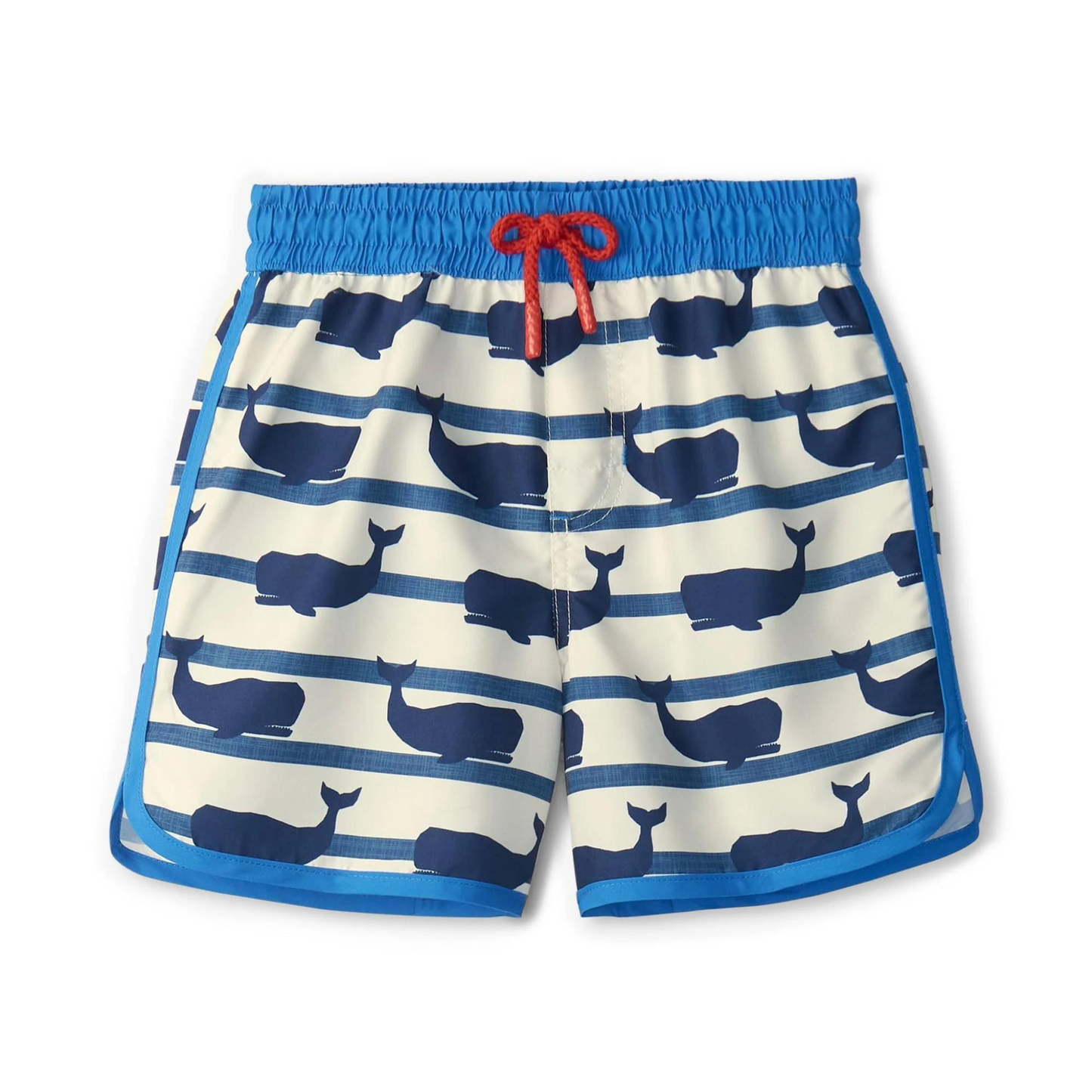 Set sail for adventure with our Boys Nautical Whale Swim Shorts. The quick-drying polyester fabric is perfect for an active day at sea or by the pool. With a whale print that tells tales of oceanic escapades, these swim shorts are a must-have for your little mariner.