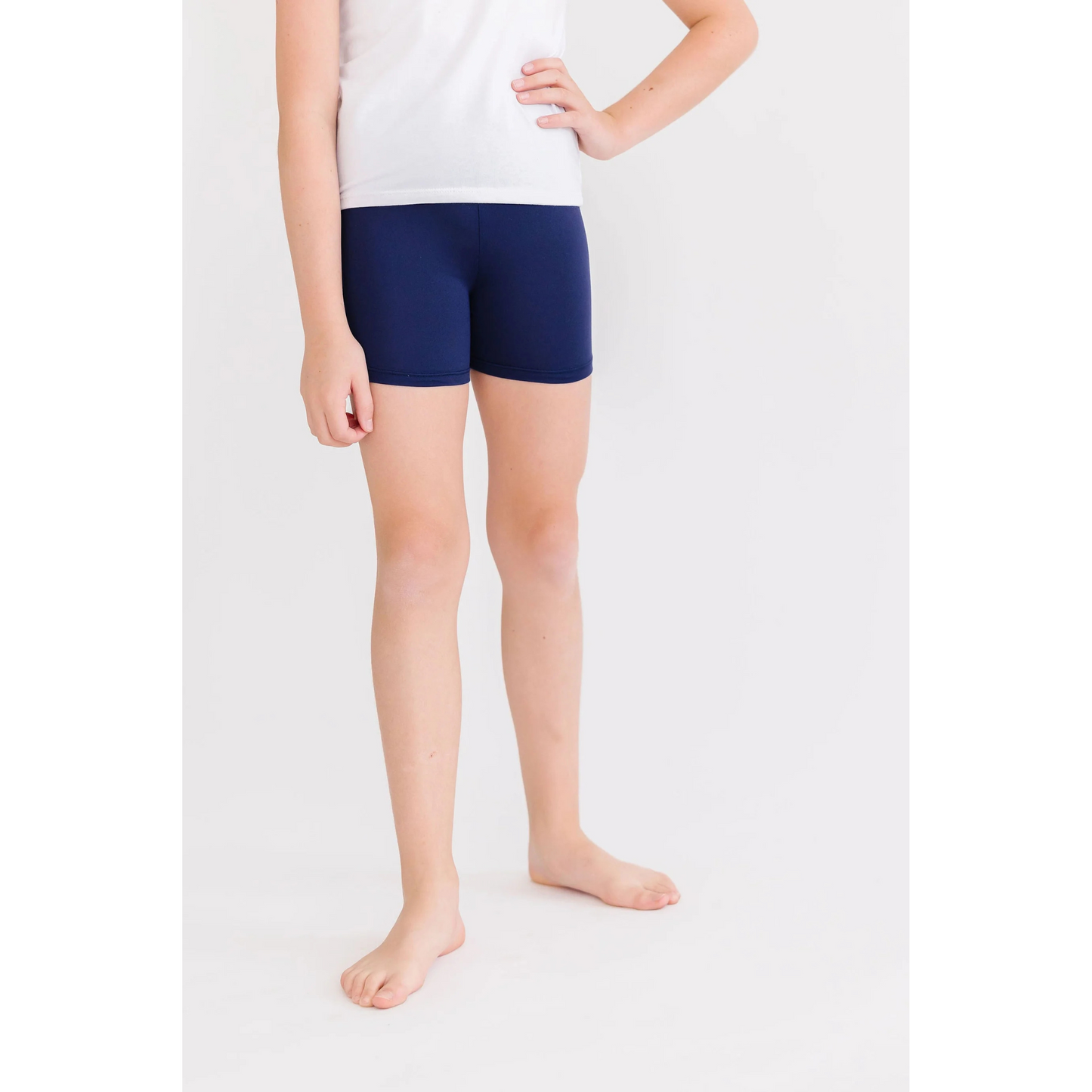 Our twirl shorts are perfect for layering under dresses and skirts. Mila loves to mix and match her twirl shorts and dresses for school. Sometimes they coordinate, sometimes they don't, but she's always covered when she practices cartwheels on the playground. Our twirl shorts are high waisted for extra bum coverage.