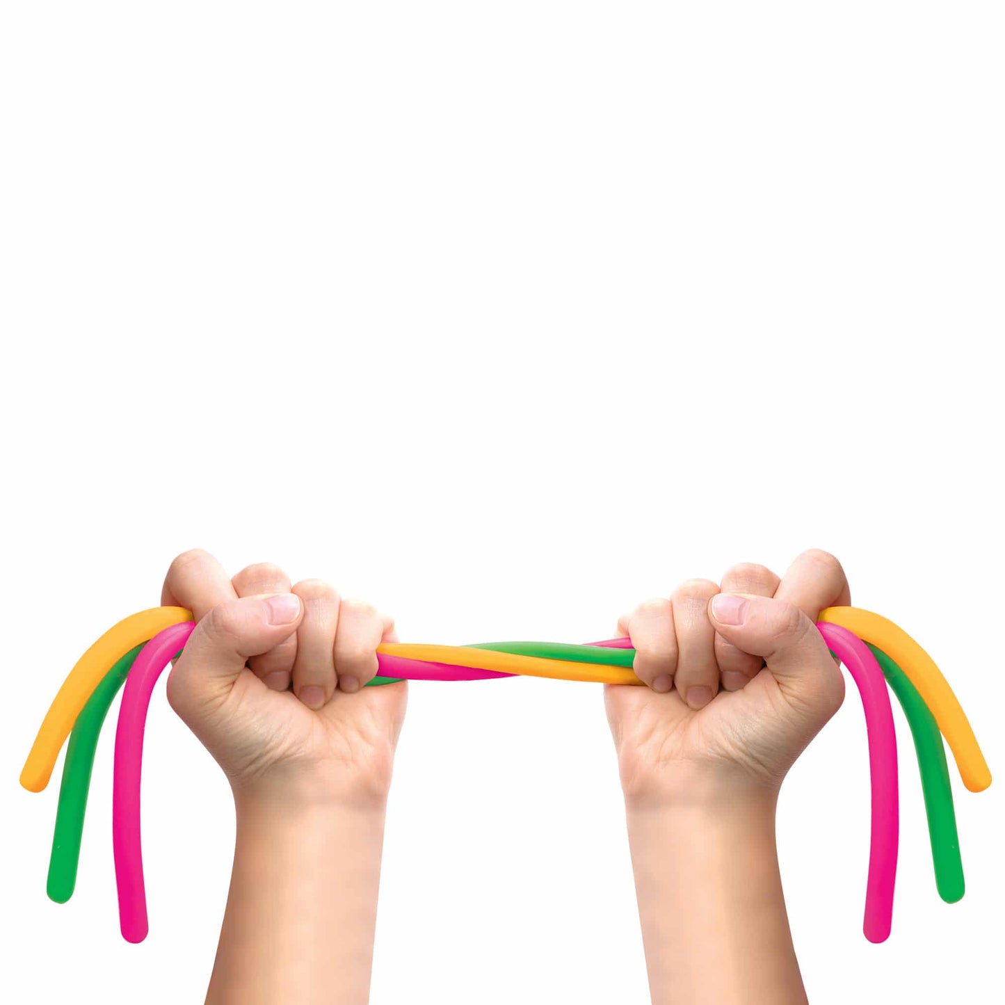 Noodlies fulfill the fun of playing with your food…without the mess! You can squeeze, stretch, knot, or mash these elastic noodles to your heart’s desire. Noodlies are brightly colored in 5 fluorescent tones and offer a unique sensory play experience that creates loads of endless fun. Toss them around with friends or squeeze a handful when you want to mellow out!