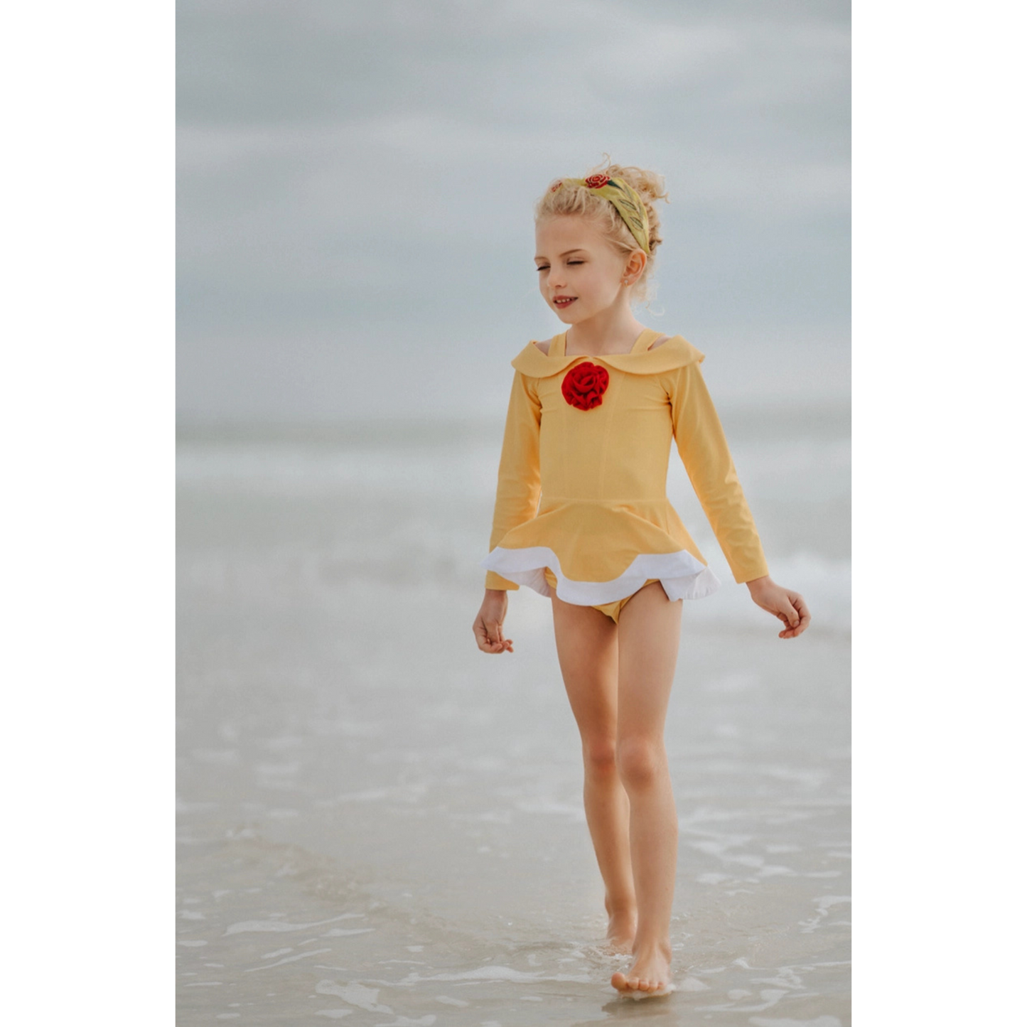 Stay protected and stylish with our Red Rose Rash Guard Swim Set! This playful two piece set offers long sleeve coverage and is safe for all your water adventures. Perfect for book lovers, beasts, and even castle dwellers!