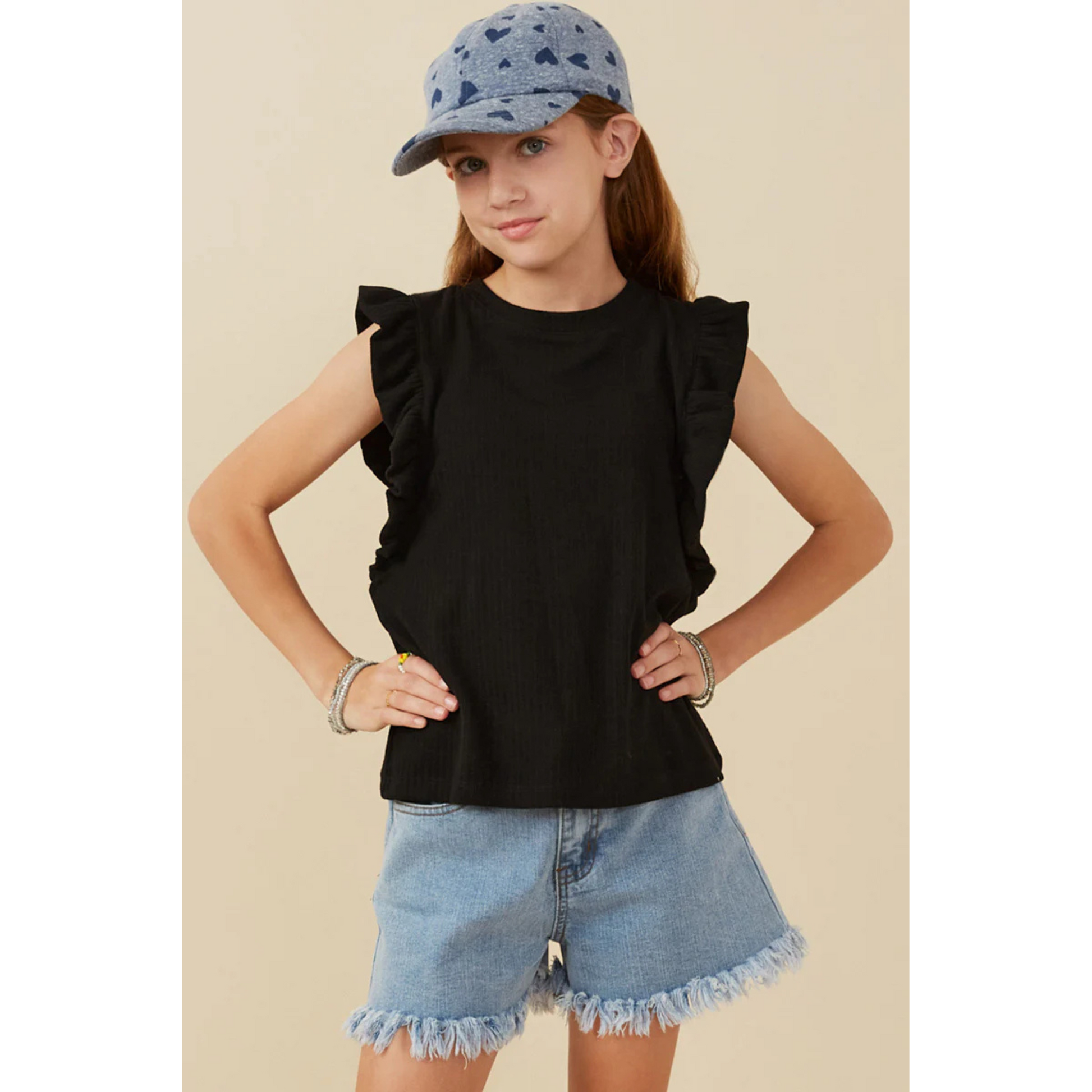 Ribbed ruffle knit tank - black