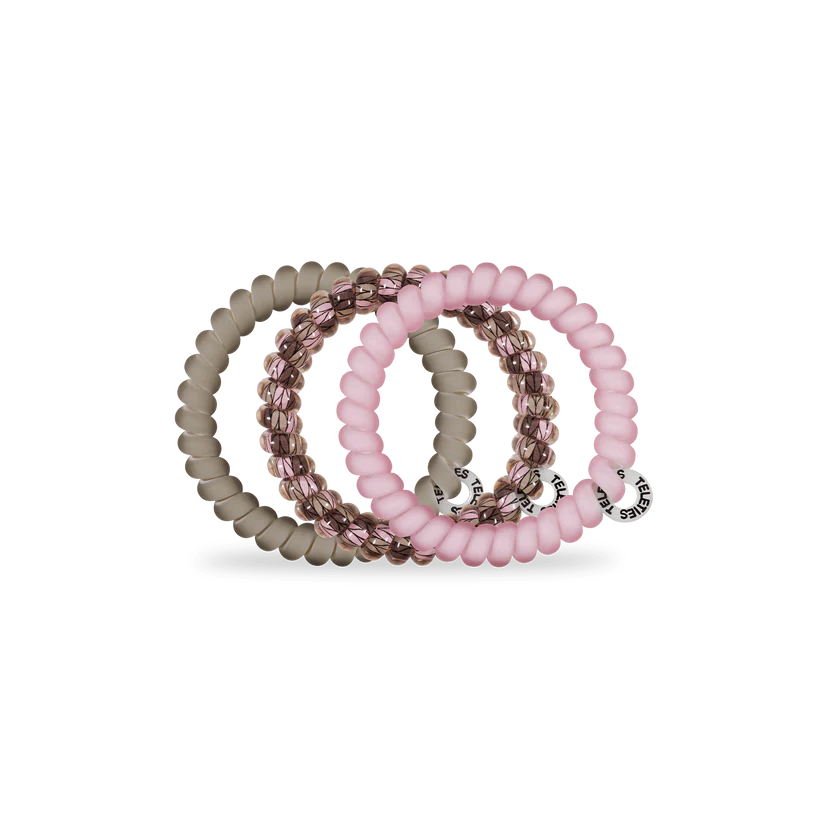 Truly Taupe Small Hair Ties in Blue and Taupe offer a strong grip without damage, doubling as a chic wrist accessory when not in use. Your new favorite hair essentials all year round.