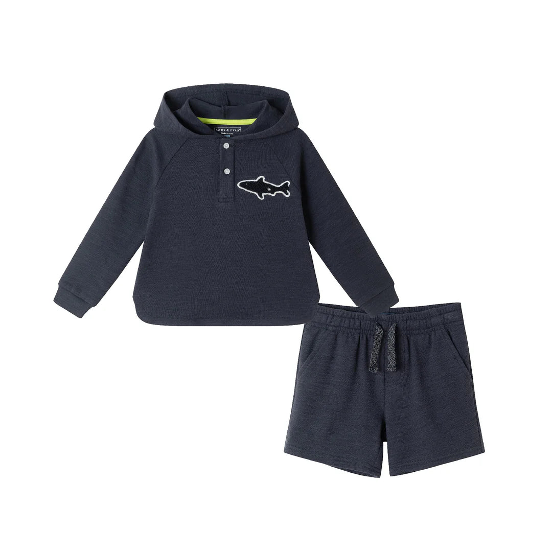 Textured hoodie w. shark patch short set
