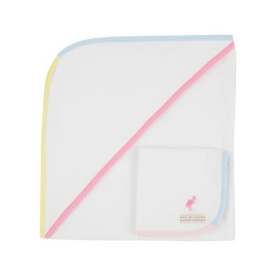 Bath time just got a whole lot sweeter with our Rub-A-Dub Gift Set! This darling set includes our hooded towel and wash cloth. Featuring the softest terrycloth and fun color block details, this is a must-have!